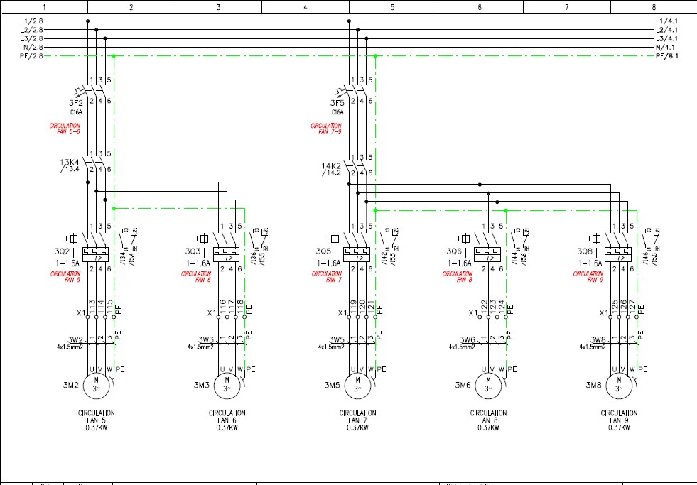 - Control schematic diagrams for motor starters, DOL, star-delta, and VFD circuits